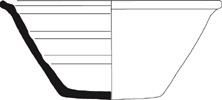 Récipient avec une lèvre dont la face interne ne marque aucune rupture avec la panse - si ce n’est une légère concavité - et dont la face externe est de section triangulaire, à parement infléchi.