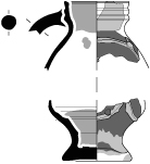 Pot 3-6Pot à profil cylindrique assez étroit, terminé par un col court à lèvre arrondie et gouttière interne. Anse plate à sillon. Base plate.
