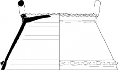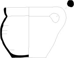 Lèvre sans inflexion épaissie et décorée d'une bande d'argile festonnée au pouce. Panse cylindrique et fond lenticulaire. Muni de deux poignées.