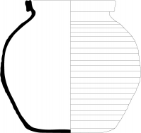 Marmite 1Récipient muni de deux anses coudées opposées de section circulaire et de trois pieds rapportés.