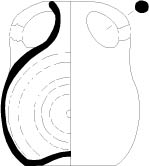 poêlon 5poêlon à lèvre à inflexion externe creusée d'une gorge (rectangulaire ou non), panse cylindrique carénée et fond arrondi porté par trois pieds en mamelon