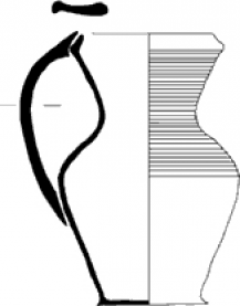 Pot 11-8Récipient pouvant être de grande taille, avec une panse ovoïde dont le maximum est assez bas. Il est muni de deux anses opposées, plates qui se rattachent à une lèvre déjetée munie d'une légère gorge interne. Pas d'élément verseur.