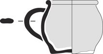 Tasse 1Récipient légèrement tronconique avec une base marquée importante et une anse plate.