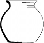 Récipient représenté par un individu à base concave, panse ovoïde et encolure en bandeau, muni d’une anse verticale rubanée dont les points de fixation supérieur et inférieur s’inscrivent respectivement sur la lèvre et sur la zone d’inflexion de la panse. Se différencie du pot ansé 4d par la présence de stries obliques sur la panse. Dimensions : hauteur totale : indéterminée ; diamètre de la base : 84 mm ; diamètre maximal de la panse : 144 mm ; diamètre de l’ouverture : 136 mm.
