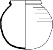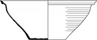 Récipient faiblement cannelé à base concave, panse évasée courbe et encolure saillante, muni d’une anse verticale rubanée dont les points de fixation supérieur et inférieur s’inscrivent respectivement sur la lèvre et sur la panse. Dimensions : hauteur totale : de 100 à 112 mm ; diamètre de la base : de 103 à 110 mm ; diamètre de l’ouverture : de 219 à 220 mm.