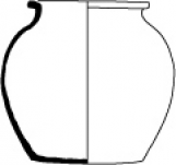 Récipient représenté par un individu à base concave, panse évasée courbe et encolure saillante, muni d’une anse verticale torsadée dont les points de fixation supérieur et inférieur s’inscrivent respectivement sur la lèvre et sur la panse. La base de l’objet est saillante. Dimensions : hauteur totale : 134 mm ; diamètre de la base : 138 mm ; diamètre de l’ouverture : 212 mm.