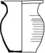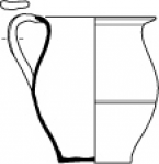 Pichet 1Récipient cannelé représenté par un individu à base festonnée, panse globulaire et encolure verticale, muni d’une anse verticale rubanée dont les points de fixation supérieur et inférieur s’inscrivent respectivement sur le col et sur l’épaule. Dimensions : hauteur totale : 203 mm ; diamètre de la base : 99 mm ; diamètre maximal de la panse : 151 mm ; diamètre de l’ouverture : 70 mm.