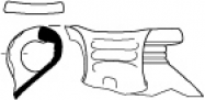 Bock 1Tasse dont la hauteur totale est environ deux fois supérieure à la largeur maximale de la panse. Ce récipient, représenté par un individu à base concave, panse ovoïde et encolure verticale, est muni d’une anse verticale rubanée dont les points de fixation supérieur et inférieur s’inscrivent respectivement sur l’épaule et sur la panse. Le corps du récipient, infléchi à sa base, est caractérisé par la présence d’un décor aviforme. Dimensions : hauteur totale : 177 mm ; diamètre de la base : 82 mm ; diamètre maximal de la panse : 93 mm ; diamètre de l’ouverture : 55 mm.