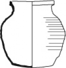 Récipient représenté par un individu à base concave, panse évasée. Dimensions : hauteur totale : 80 mm ; diamètre de la base :116 mm ; diamètre de l’ouverture : 217 mm.