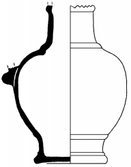 Vase haut fermé, avec col et avec moyen de préhension. Récipient à col convexe et à profil tronconique ; hauteur de la panse mesurant à peu près la moitié de la hauteur totale du vase. « Récipient généralement non couvert, en bois, métal, céramique, pour transvaser et servir principalement du vin ou du cidre.