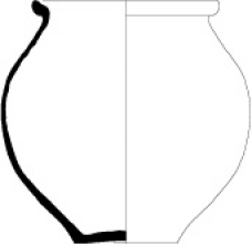 Coquemar à bord éversé à lèvre plate oblique interne, à face latérale interne concave et à face latérale externe concave, convexe ou rectiligne ; panse médiane ou haute globulaire ou ovoïde ; assise plate ou soulevée ; anse verticale, dont l'attache supérieure se fixe sur le bord tandis que l'attache inférieure se fixe en revanche toujours sur le haut de la panse, au niveau du diamètre maximum de celle-ci.