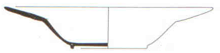 Récipient peu profond, assez large. La panse est convexe. La base est continue, à assise plate ; trois podes soutiennent le récipient. Deux tenons opposés sont fixés à la panse. Le bord est débordant long (aile), oblique, à face supérieure plate et à face latérale externe convexe. Il s'apparente à un poêlon par sa fonction.