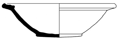 Plat à aile très longue oblique, panse rectiligne ou légèrement convexe, fond marqué débordant ou non ou fond continu, assise plate ou soulevée.