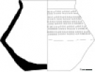 Récipient globulaire à deux anses rubanées reliant le bord à la panse, bord rectangulaire à inflexion externe.