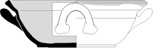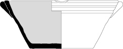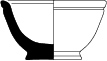 Récipient à carène marquée, profil surbaissé, fond plat, bord horizontal à inflexion externe, lèvre rectangulaire.