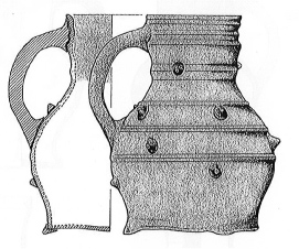 Pegau Récipient à bec ponté et anse opposée attachée sur la lèvre, panse au moins aussi haute que large. (unité de mesure médiévale, environ 3,8 l)