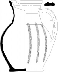 Récipient ovoïde à bec ponté et anse opposée rubanée, col inexistant ou peu marqué.