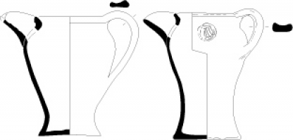Récipient ovoïde à bec ponté et anse opposée rubanée, col inexistant ou peu marqué.