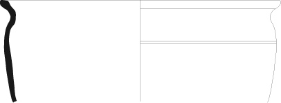 Récipient à bec ponté et pont coupé avant cuisson, anse opposée rubanée, jonction panse et base plate développée en un pied haut tronconique, bord à l'inflexion interne.