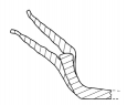 La lèvre droite possède une extrémité aplatie. Le col est rentrant