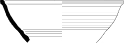Pot avec dispositif rapporté 7Pot à lèvre droite, col moyen, panse globulaire et fond plat. L'anse n'est pas connue.