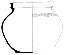 Lèchefrite 3Récipient à lèvre en bandeau, à panse parallélépipédique et à fond plat. La transition panse/fond est droite.