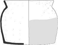 Pot 1-4Récipient à col incliné, lèvre de section triangulaire, panse galbée et fond bombé.