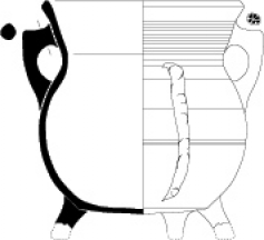 Marmite 5Récipient à rebord court, pas de col, deux anses rubanées, panse globulaire ou ovoïde, fond plat.