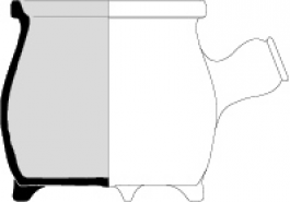 Marmite 5Récipient à rebord court, pas de col, deux anses rubanées, panse globulaire ou ovoïde, fond plat.