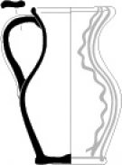 Pichet 2-4Récipient avec bord à lèvre évasée en bandeau, bec pincé opposé à anse rubanée, col évasé, panse globulaire, fond plat débordant.