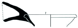 Coquemar 7-2 | Récipient globulaire, muni d'une lèvre développée et d’un manche tubulaire. Datation : 2nd moitié XVIIe-XVIIIe Lieu de découverte : Chalon-sur-Saône, couvent des Visitandines Département : 71 |  |