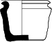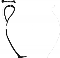 Ecuelle 4-1Récipient à bord arrondi infléchi, une oreille de préhension, une anse rubanée, panse évasée, fond plat débordant.