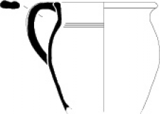 Mortier 1-5 Récipient à bord arrondi infléchi, quatre tenons de préhension, panse évasée, fond plat débordant.