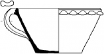 Tasse 1-4Récipient avec bord saillant ou rectangulaire, panse droite, une anse rubanée, fond plat débordant. Bord saillant ou rectangulaire, panse droite, une anse rubanée, fond plat débordant.