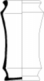 Tasse 2-1Récipient avec bord évasé dans le prolongement de la panse, sans anse, paroi oblique, fond plat débordant.