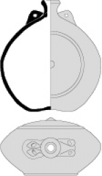 Lampe à huile 1-1Récipient avec bord à lèvre arrondie munie d’un bec verseur pincé, pied haut probable.