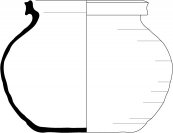 Pichet 3-1Récipient à lèvre en Y rentrante avec une liaison bien marquée au niveau du col. Sa base est légèrement concave et son anse en ruban.