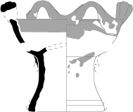 Pot 21-9Pot à lèvre confondue avec la panse, qui se distingue par une extrémité arrondie, plate ou une légère gorge sommitale. La base est concave à fond légèrement aplatie. Deux anses plates diamétralement opposées ou deux tenons plats horizontaux sont fixés sur la lèvre.