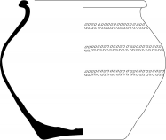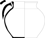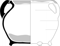 Marmite 2-2Récipient globulaire avec un fond plat ou légèrement lenticulaire avec une lèvre déjetée en faucille. Deux "oreilles" ont été aménagées par étirement de la lèvre pour le perçage de trous de suspension.