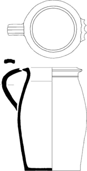 Pichet 4-2Récipient dont le col se confond avec la panse dont le maximum est base. Il possède un col cylindrique long et légèrement évasé, une lèvre en bandeau et une anse attachée sur cette dernière. Il présente parfois un bec pincé.