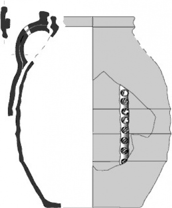 Plat 12-2Récipient tronconique à lèvre épaissie et gorge sommitale. Il possède un bec pincé.