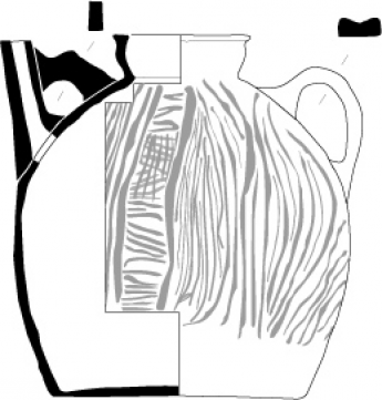 Cruche 4-1Récipient à déversoir tubulaire latéral, ouverture à bord rond, anse en panier de section ronde.