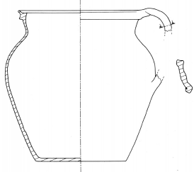 Pot 4-1 (Pot globulaire à suspendre 1) | Pot à lèvre éversée montante, sans renflement, de section arrondie et sans gorge interne. Elle présente deux étirements opposés. |  |
