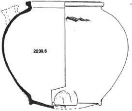 TerrineRécipient plus bas que la marmite ou le poêlon, de forme cylindrique, avec des parois légèrement cintrées. La base est plate. Ce vase ne semble pas être muni d'un élément de préhension.