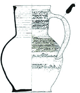 Cruche 2-5 | Récipient globulaire, muni à la fois de deux anses latérales et d’une anse-panier.