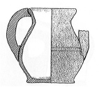 Pot 8-1bord éversé en bandeau muni d’une anse, lèvre arrondie, l’inflexion col/panse peut être marquée par un ressaut panse arrondie, base muni de pieds à extrémité pointue