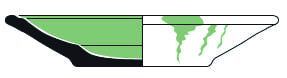 Jatte/Plat 2-1 | Récipient caréné, muni d’une lèvre à marli court épaisse. Les dimensions sont variables. Datation : 1e moitié XVIe Lieu de découverte : Mâcon, Couvent de la Visitation Département : 71 |  |
