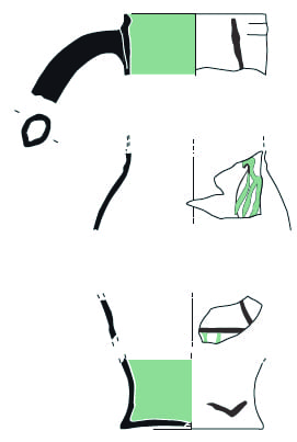 se rattachant à la lèvre. Datation : XIVe - XVe Lieu de découverte : Tracy sur Loire, atelier des « Poteries » Département : 58 |  |