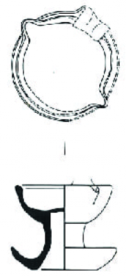 opposés, une anse latérale et muni d’une coupelle inférieure. Datation : 2nd moitié XIIIe Lieu de découverte : Decize, Groupe scolaire Monnot Département : 58 |  |