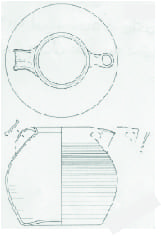 Coquemar 7-2 | Récipient globulaire, muni d'une lèvre développée et d’un manche tubulaire. Datation : 2nd moitié XVIIe-XVIIIe Lieu de découverte : Chalon-sur-Saône, couvent des Visitandines Département : 71 |  |